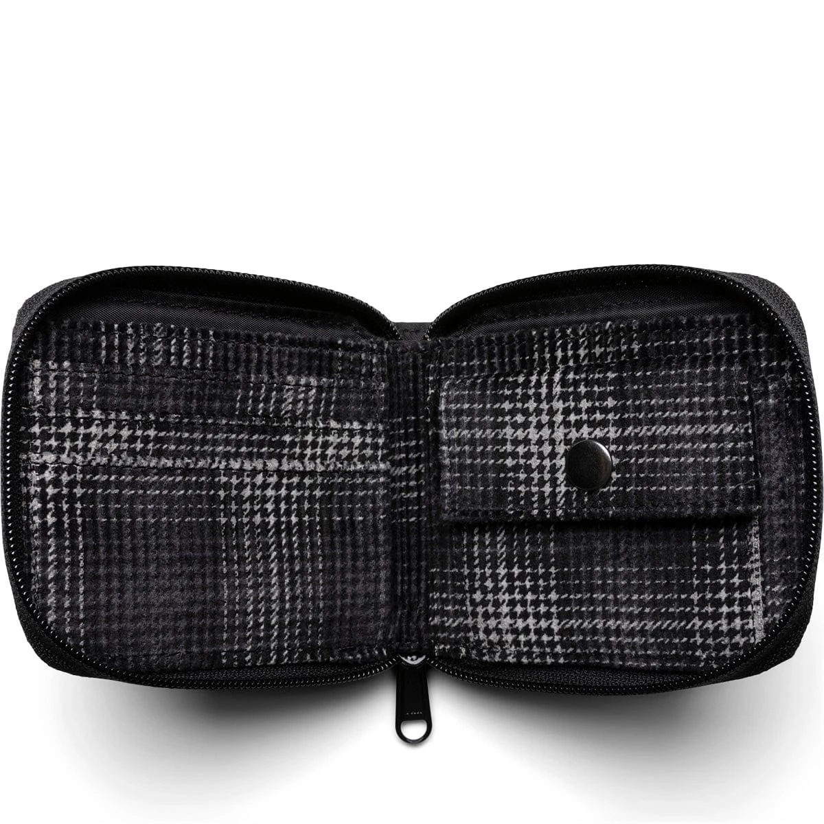 - Coin pocket with flap and snap closure at right side