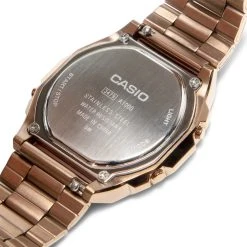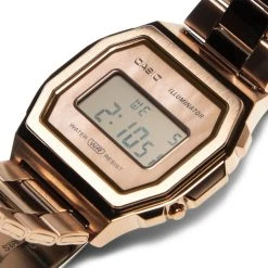 CASIO Vintage A1000 premium models: design icons made from top-quality materials. The case is made of solid stainless steel and is available in classic silver or in three perfect shades of rose gold. A sophisticated ion-plated finish keeps the colors looking fresh and protects against chipping, while the color-coordinated dials with an elegant mother-of-pearl effect add a special touch to these watches. In addition to scratch-resistant mineral glass, all A1000 models of course benefit from practical features such as stopwatch, alarm and automatic calendar function.