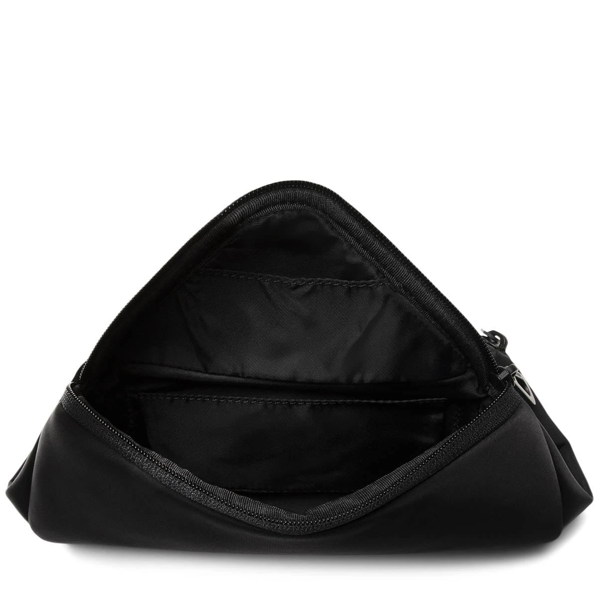 Made from black 100% Nylon with a silky feel, this moon-shaped crossbody has a practical internal zippered pocket and features a detachable eyewear pouch positioned under the flap. The main compartment is extendable; the zip at the base of the bag opens up to reveal a panel of bright orange, bringing an optional splash of colour to this black bag while increasing the volume. The ADDA shoulder strap can also be worn separately as a minimal crossbody.