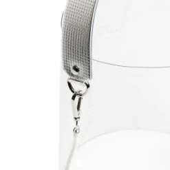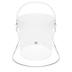 Cylindrical BAG printed with the new nana-nana logo. The handle is made of a silver sheet set within PVC. New wire chain strap in clear tubing. Crimped finish with no sewing. Comes with a cloth drawstring (storage bag) that can be used inside the BAG.