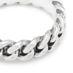 Chain Ring Slim Spinel is made out of 925 sterling silver with three handset black spinel stones. Slightly oxidized for a vintage look. 5mm width.