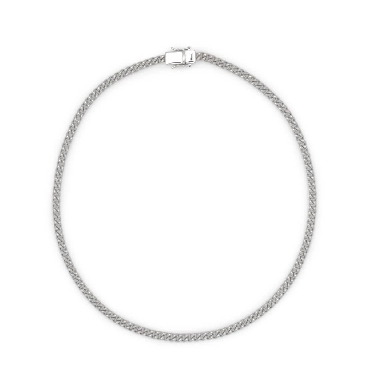 The Rounded Curb Chain Thin is a classic and modern chain updated with our custom designed lock system. The chain is made of high quality 925 sterling silver, plated with white rhodium to strengthen the surface and prevent tarnishing. The chain comes in different lengths and is also to be found in a goldplated version. All Tom Wood chains are classic and modern unisex styles, easy to wear as a single statement piece or to be combined with other necklaces from our collections.