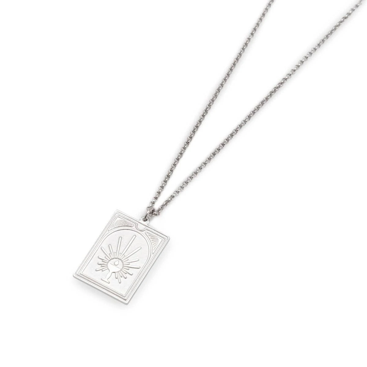 The Tarot Temperance Pendant is a mini dog-tag necklace with a modernized and simplified tarot card. The necklace is made of high quality 925 sterling silver and comes with a delicate 21.5” rolo chain including our branded logo tag. Temperance is number 14 out of the 78 cards in a tarot deck. Temperance symbolizes the flow and alchemy of life. This card indicates to bring balance, patience and moderation in life.